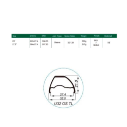 Weinmann Llanta U32 TL 29" Asimétrica 28H VF